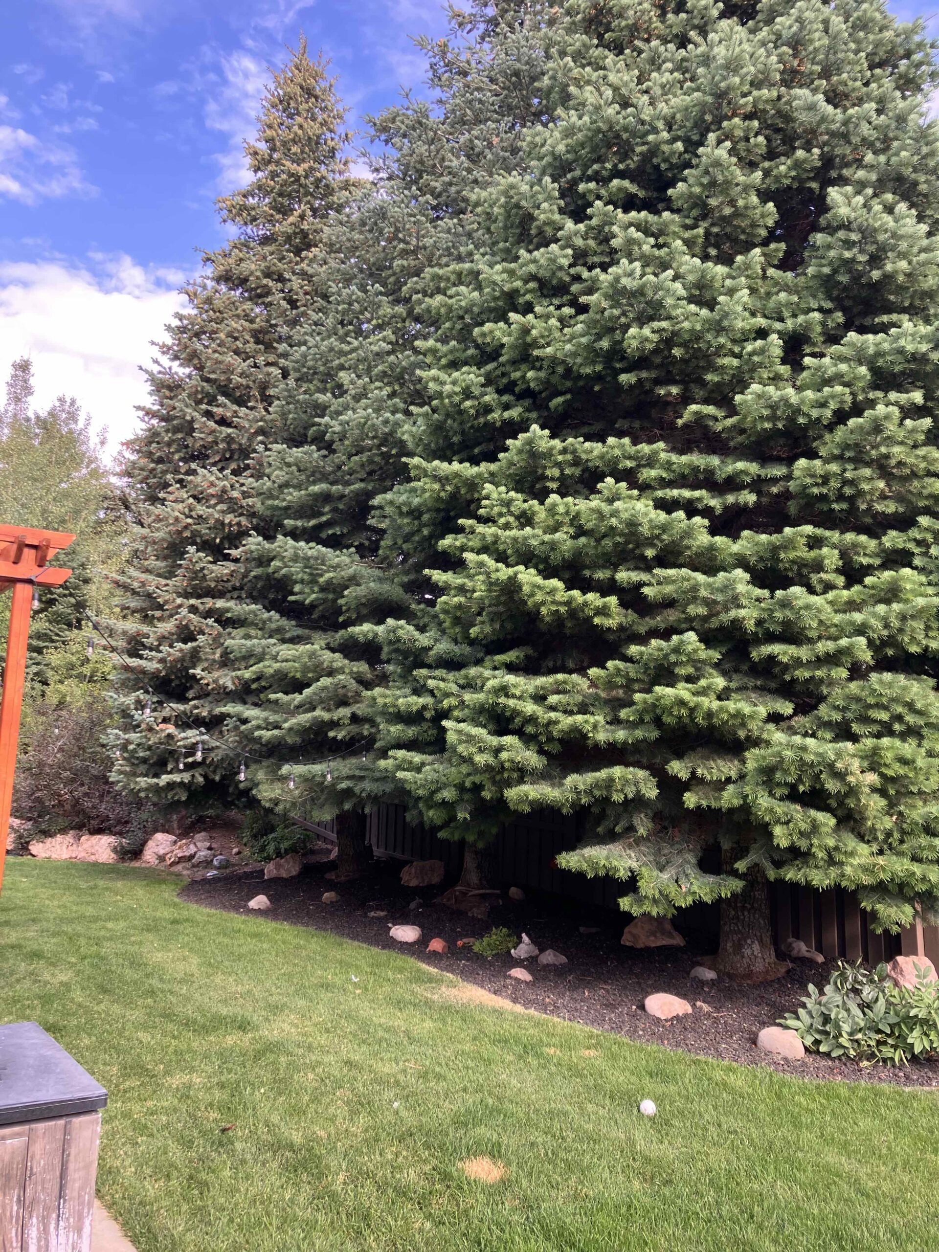 This job involved trimming three pine trees in the backyard and five additional trees in the front yard. Pines require a careful touch. Cutting too much can weaken them, while poor cuts can lead to disease or uneven growth.